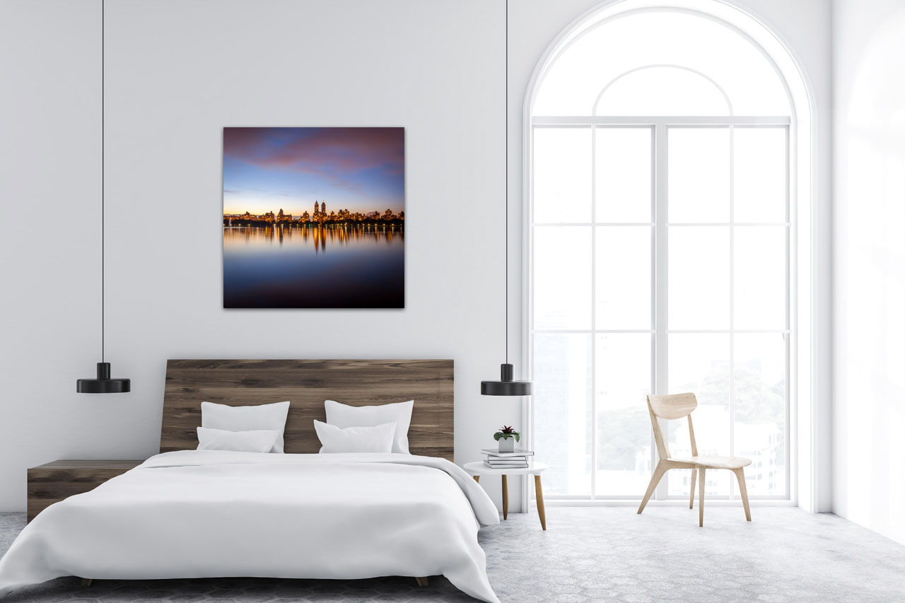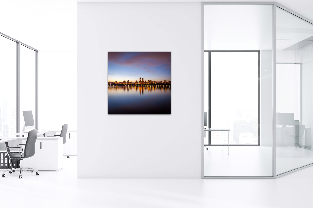• Uses a float mount system for a clean and unframed look giving the impression the artwork is floating on the wall