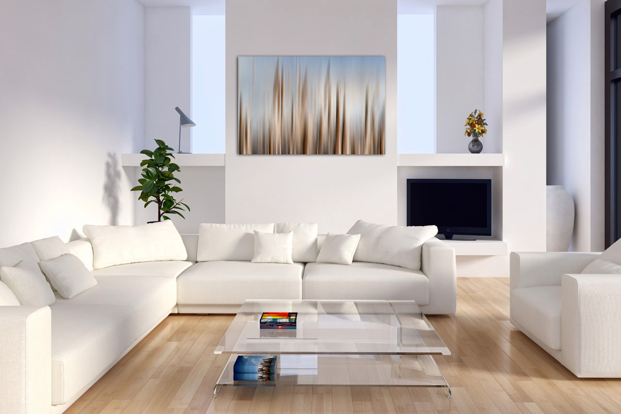 - Uses a float mount system for a clean and unframed look giving the impression the artwork is floating on the wall